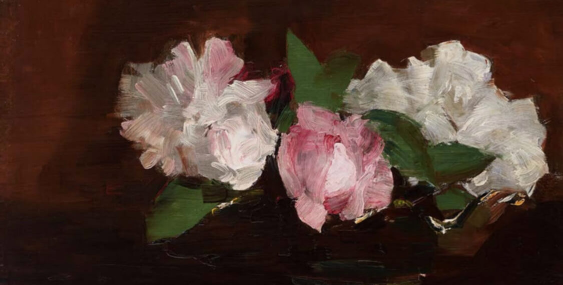 Image: Section of artwork, Roses by Beatrice Colquhoun. 1908, oil on canvas, 30.5 x 36 cm. Into the Light Collection